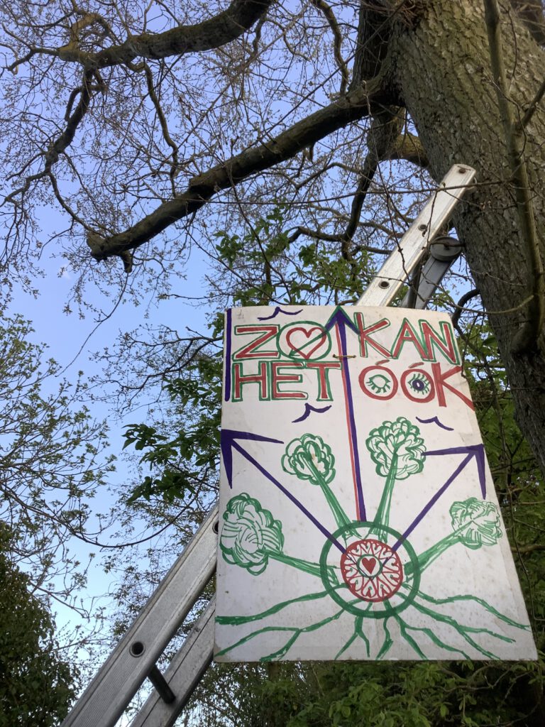 Zo kan het ook! In de hoop dat bezoekers gluren, over het “Heras Hekwerk” naar de buren. En dat zijn wij beheerders van tuin “ecoaarde”.